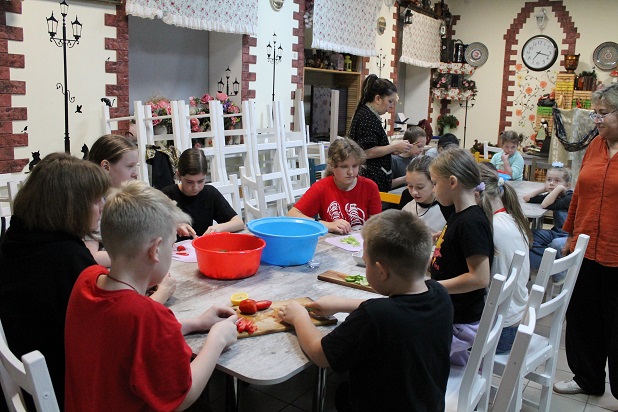 Ребята вместе с родителями погрузились в атмосферу Древней Греции, приготовив традиционный греческий салат. Но это было лишь начало приключения! Помимо кулинарии, всех ожидал настоящий культурный сюрприз: дети познакомились с зажигательным танцем «Сиртаки» благодаря артистичным ребятам из хореографического кружка “Шаг”.