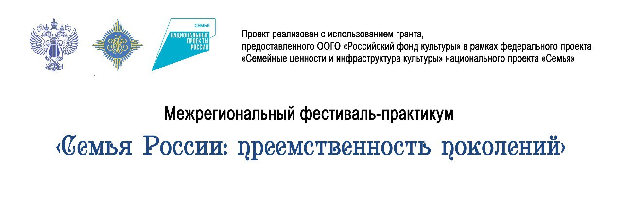 Проект реализован Автономной некоммерческой организацией «Палитра Возможностей» с использованием гранта, предоставленного ООГО «Российский фонд культуры» в рамках Федерального проекта «Семейные ценности и инфраструктура культуры» национального проекта «Семья».