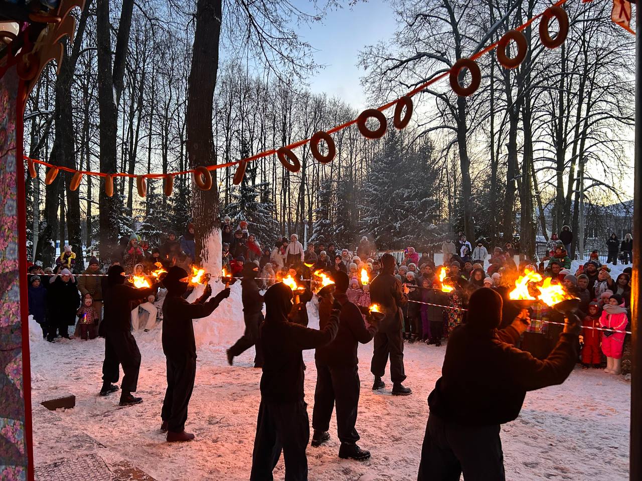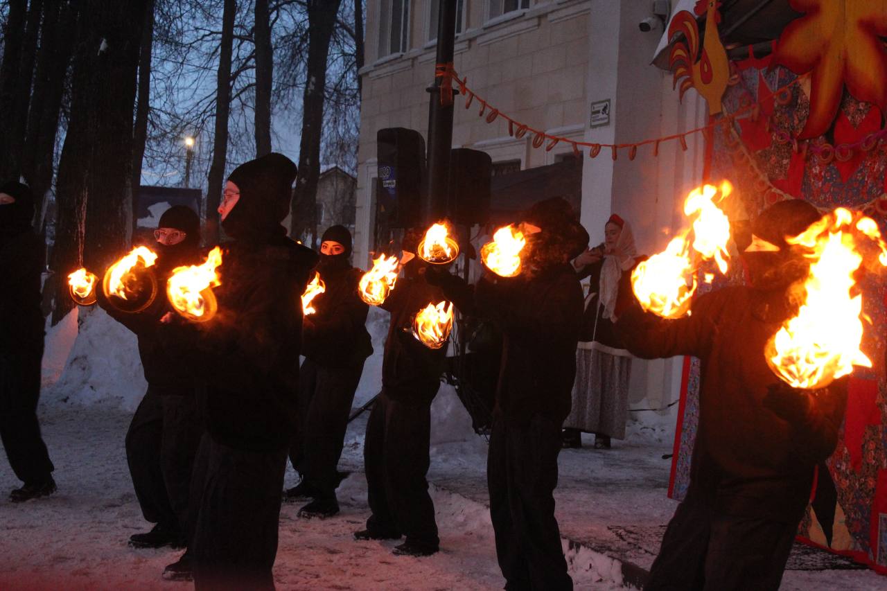 Грандиозный финал вечера — захватывающее фаер-шоу от Театра света и огня «Сирин» и символическое сожжение масленичного чучела!