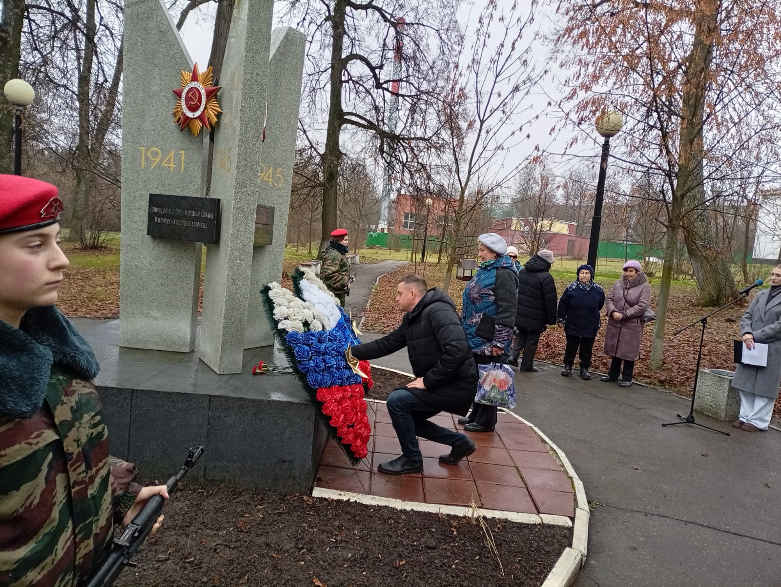 Сегодня в сквере у дома культуры «Надежда» в поселке МИС   у памятника «Воинам-освободителям в годы Великой Отечественной войны» собрались жители поселка, чтобы вспомнить подвиг героев, защищавших столицу в 1941 году. Участники возложили цветы и венки, а церемония началась под звуки Гимна Российской Федерации.Под Гимн Российской Федерации церемония была объявлена открытой.