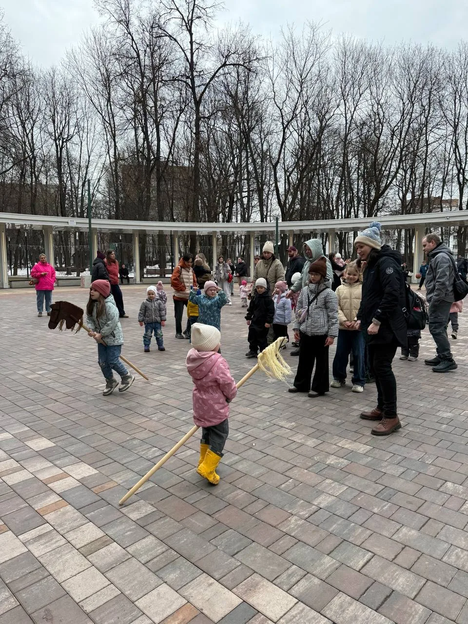 На просторной площадке парка дети играли в традиционную игру «ручеек», а также с воодушевлением «прыгали по лужам», оставшимся после растаявшего снега. Такие активные игры подарили участникам массу положительных эмоций и помогли развить физическую активность.